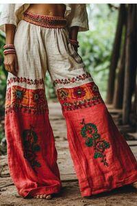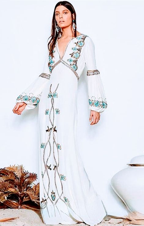 Intricately Embroidered A-Line Bohemian Muslin Cotton MAXI Dress