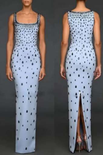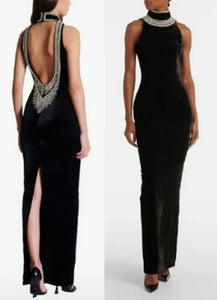 Exquisite Cotton Blend High Fashion Half Sleeve Beaded Party MAXI Gown