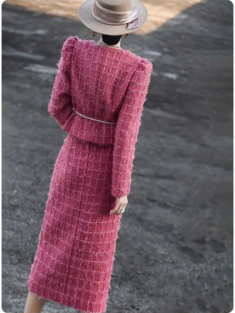2 Piece Cotton+Wool Blend Autumn Winter English Tweed MIDI Skirt Set
