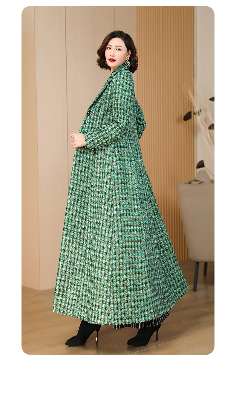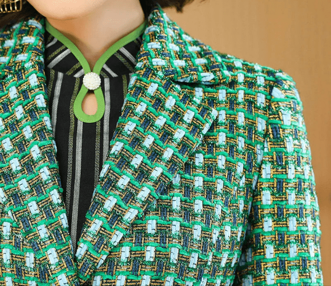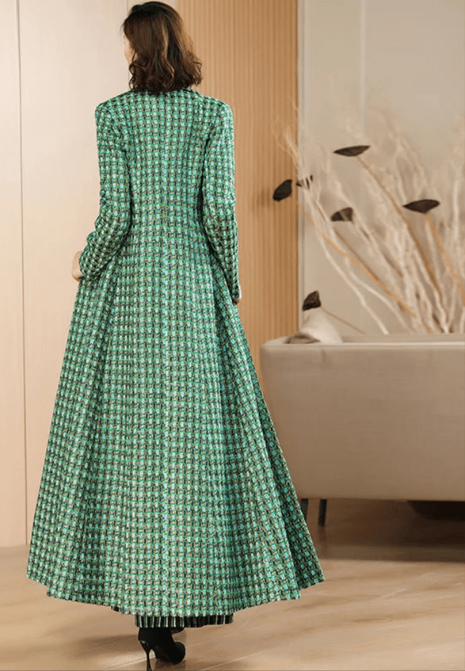 Classic Sleek English Style Wool Blend Single Breasted Tweed Coat
