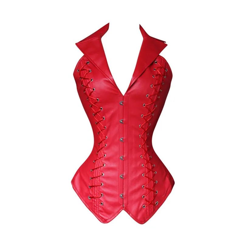 Gothic Steampunk Side Lace-Up Steel Boned PU Faux Leather Corset