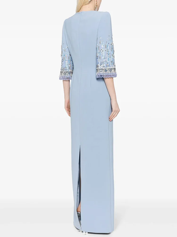 Vintage Tastefully Beaded Cotton Blend Special Occasion MAXI Gown - Wigging It Etc