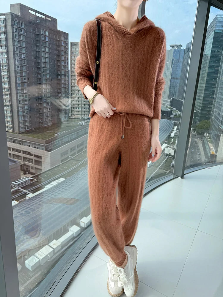 Super Thick Warm 2 Piece 100% Wool Hoodie+Pencil Pants Set