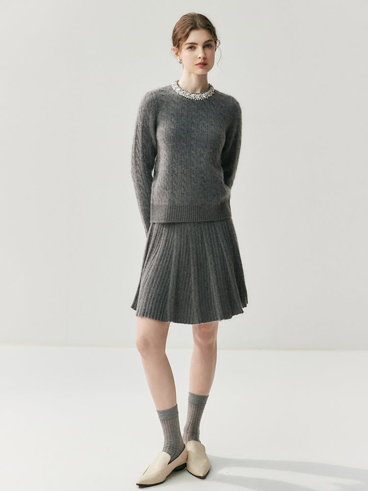 Bejeweled 100% Cashmere Cable Knit Grace Kelly Style Pullover Sweater