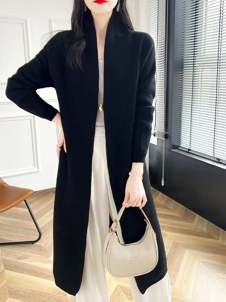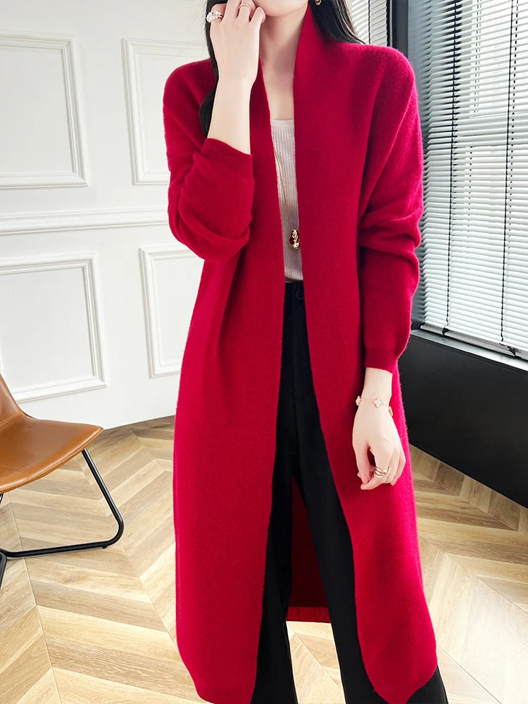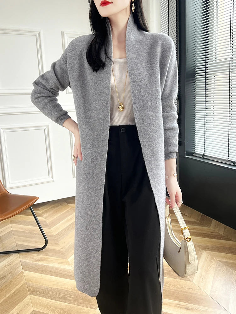 Chic Sophisticated Seamless 100% Merino Wool Open Stitch MIDI Cardigan