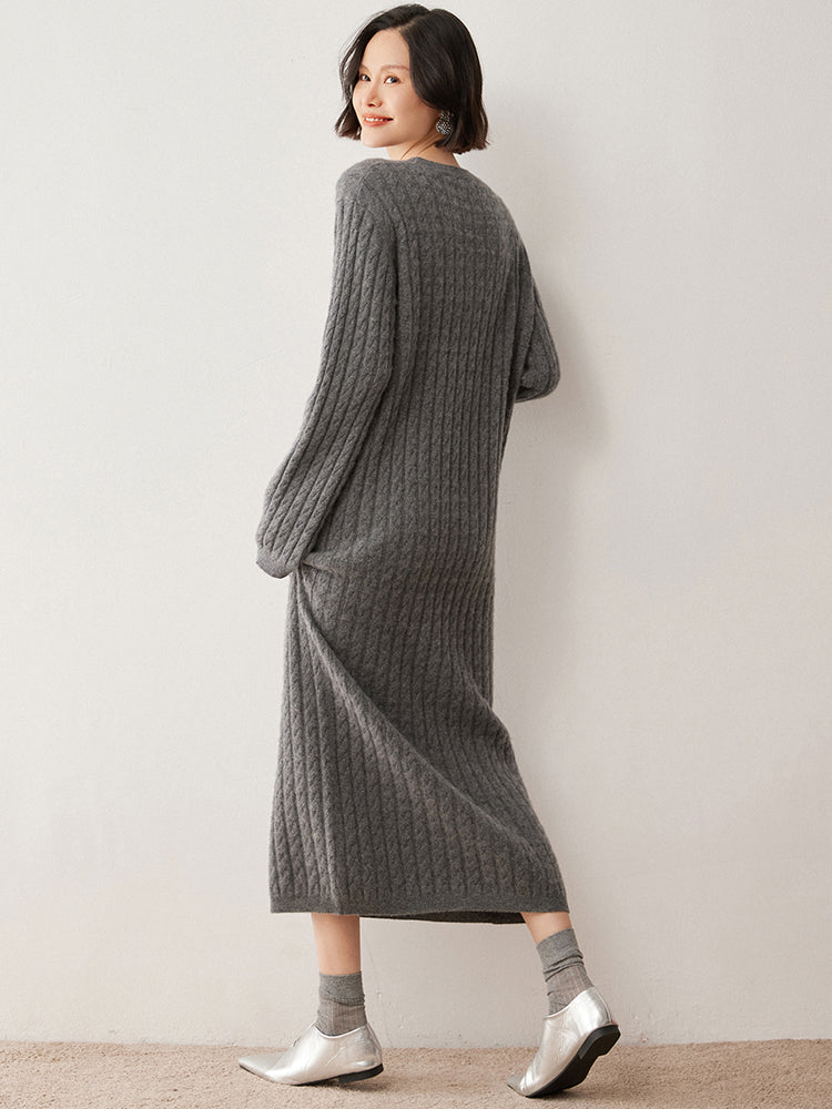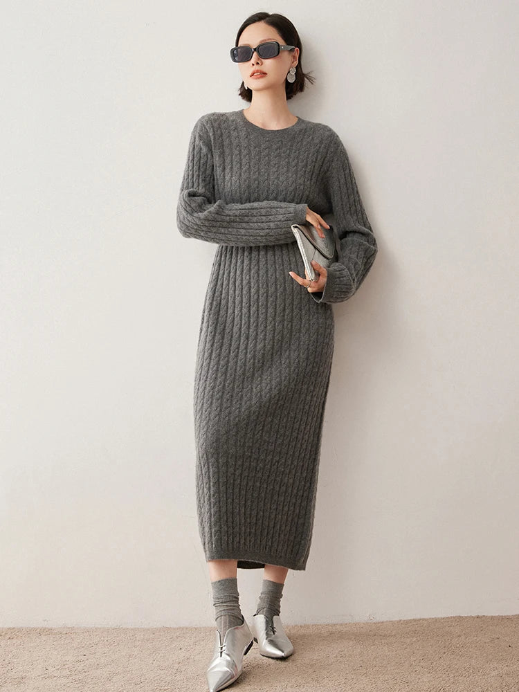 Classic Thick+Fluffy Comfy Cable Knit MAXI Winter Sweater Dress