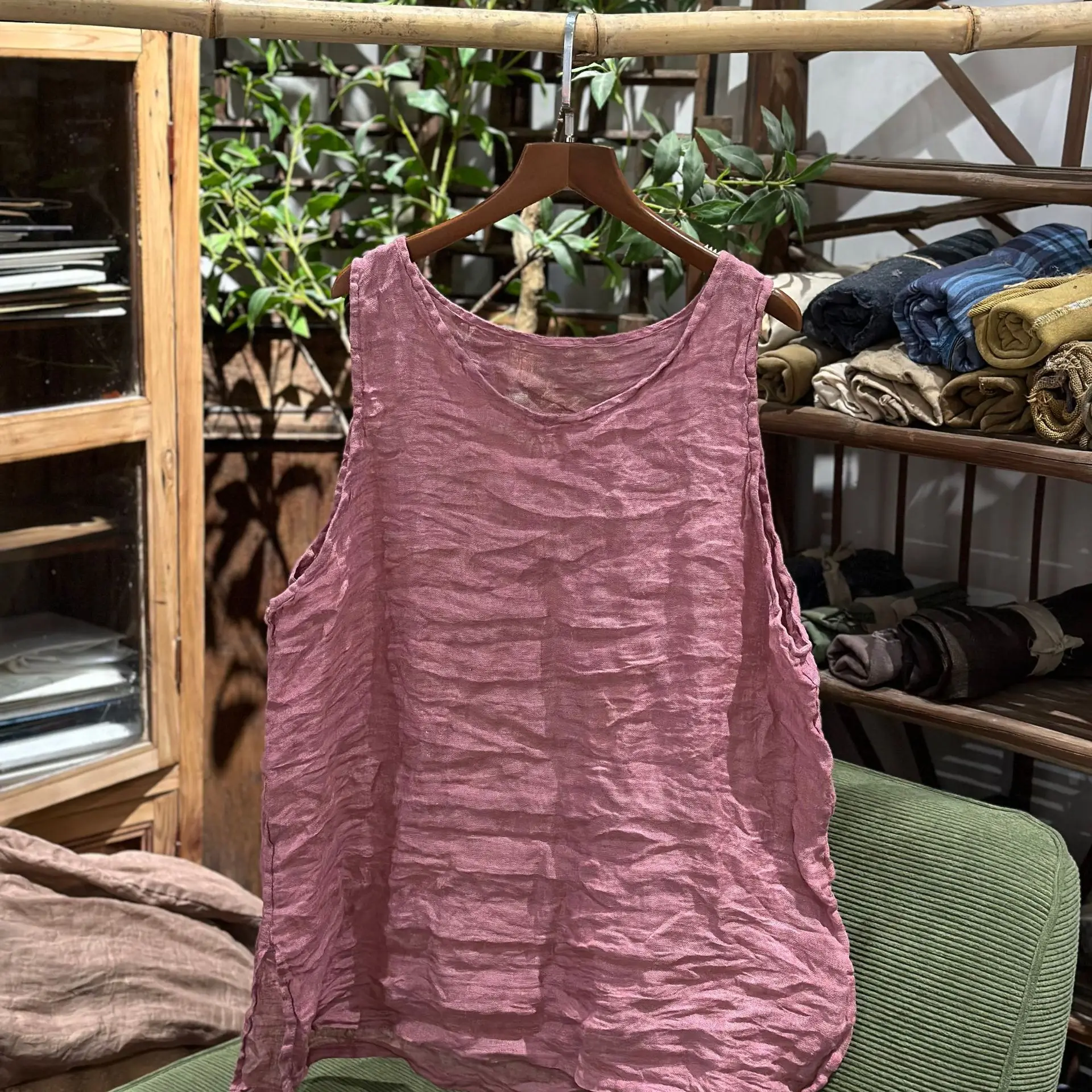 Vintage Preshrunk Roomy Breathable Ramie Tank Tops