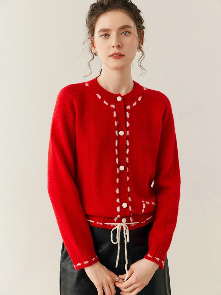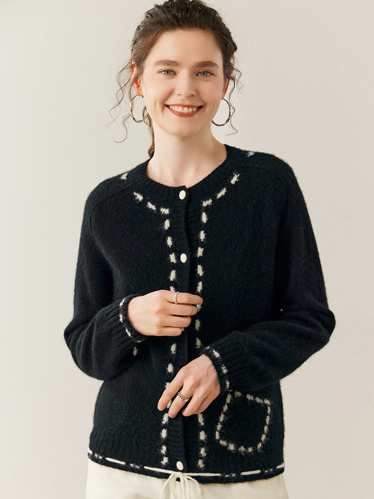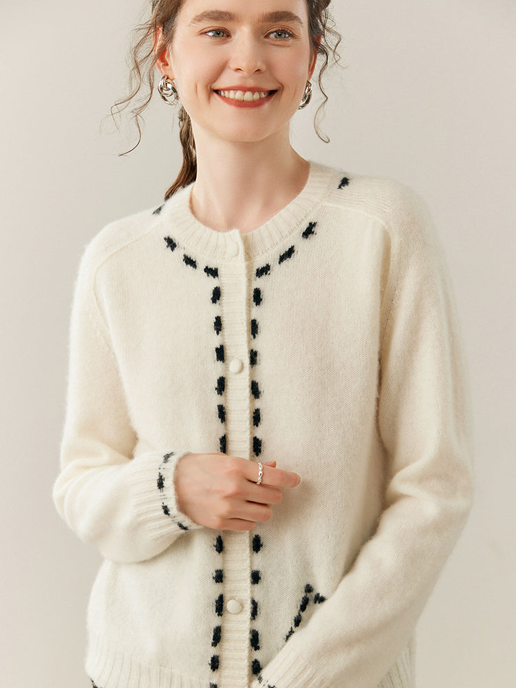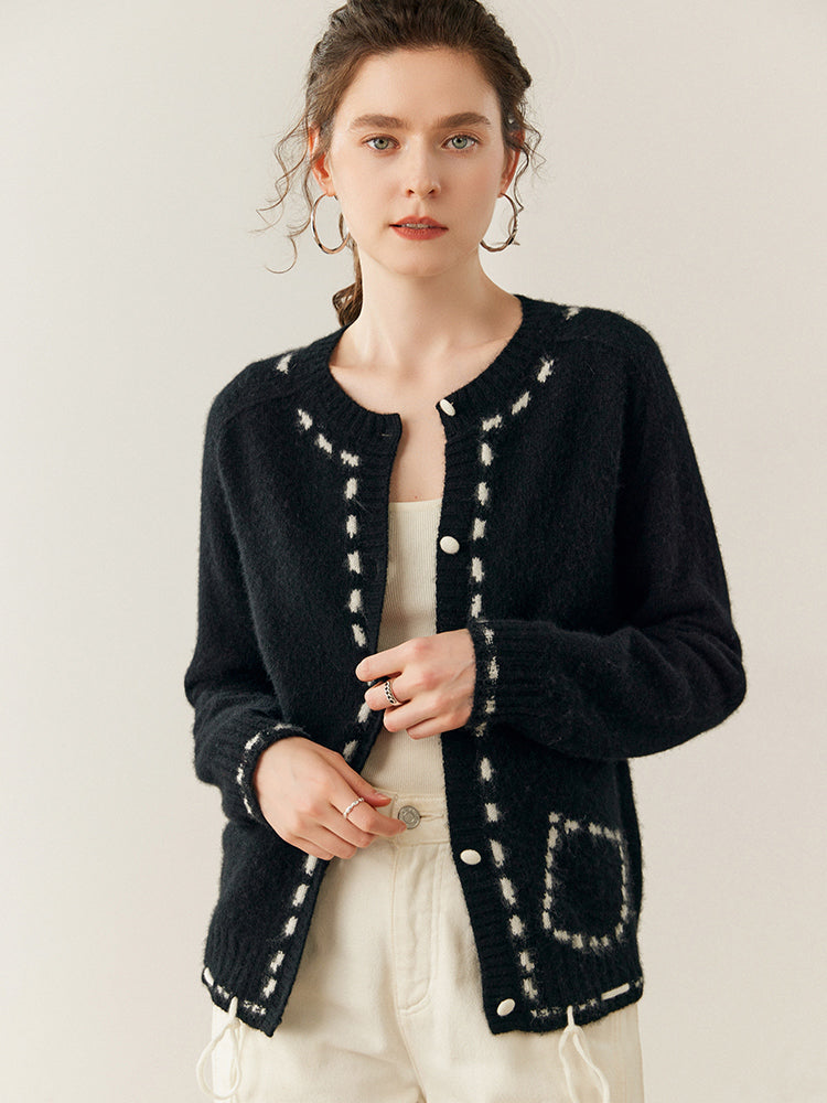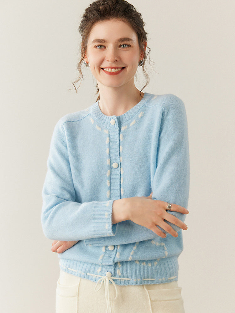 100% Cashmere String-Piped Densely Knit Warm Cardigan