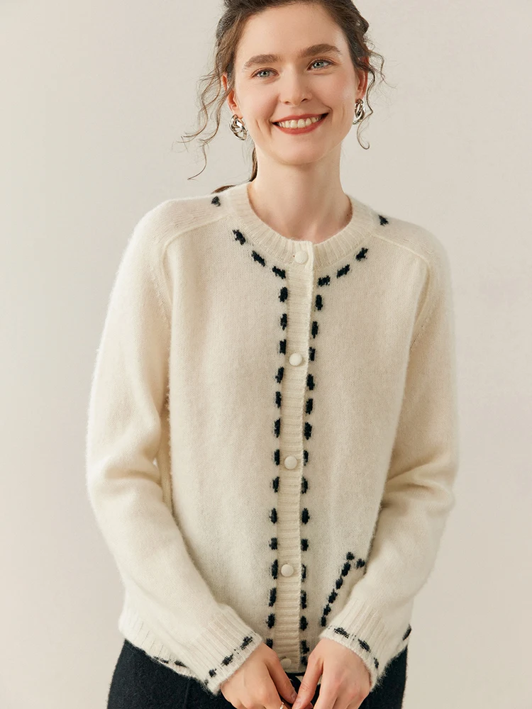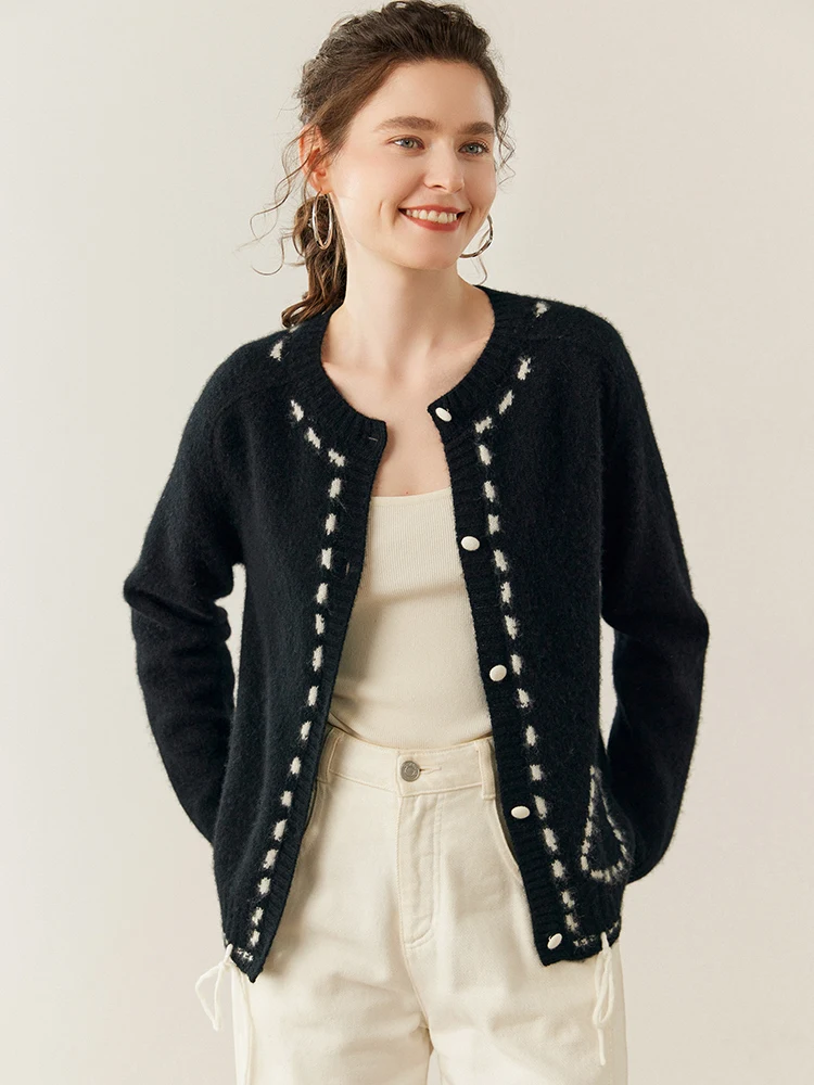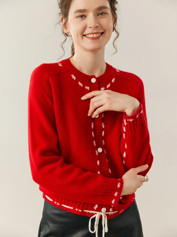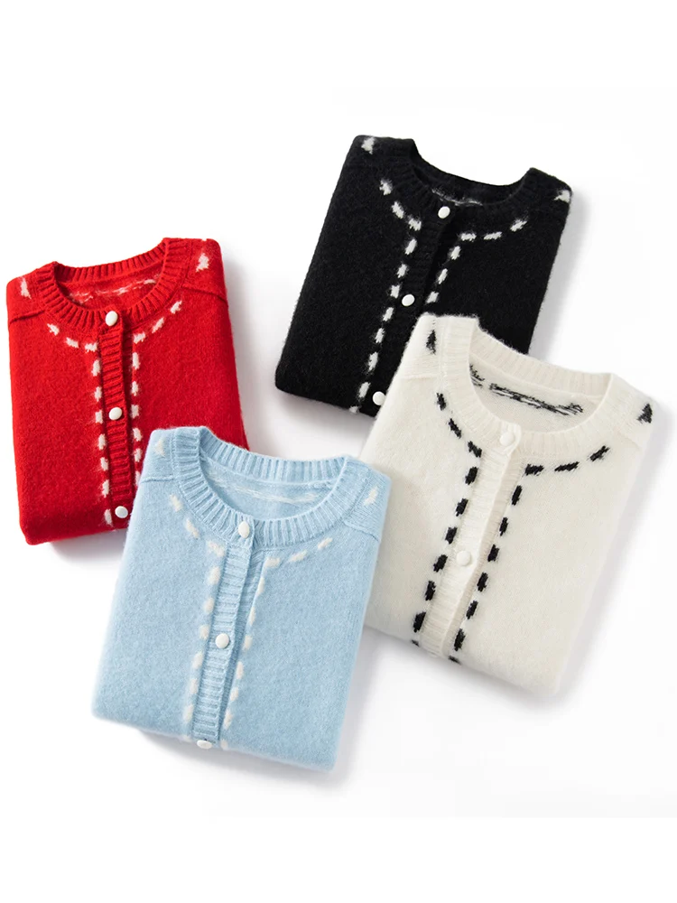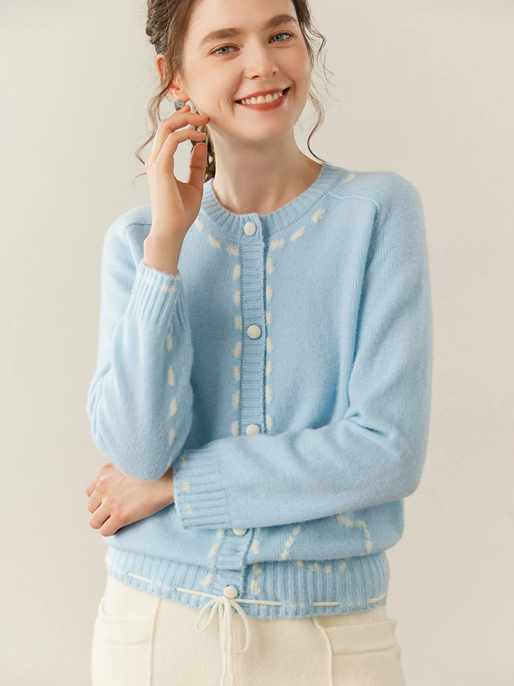 100% Cashmere String-Piped Densely Knit Warm Cardigan