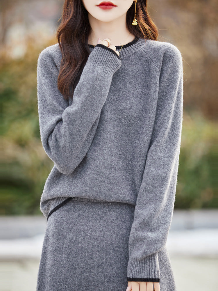100% Extra Fine 2 Piece Merino Wool Pullover Sweater + MIDI Skirt Set