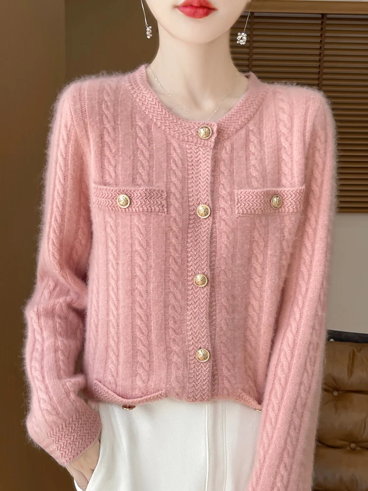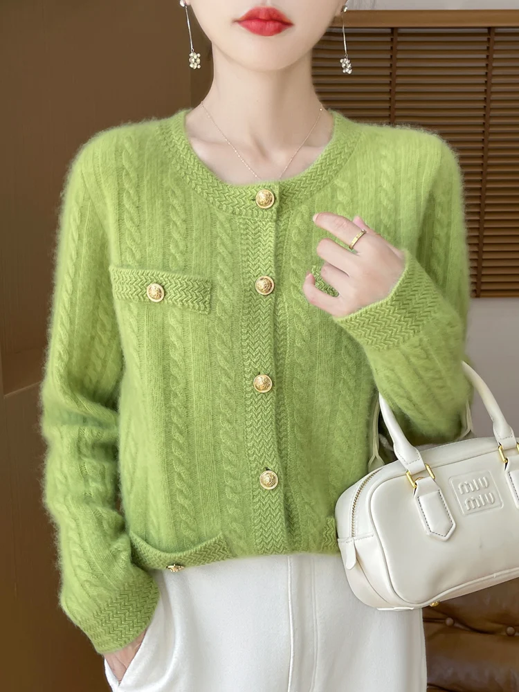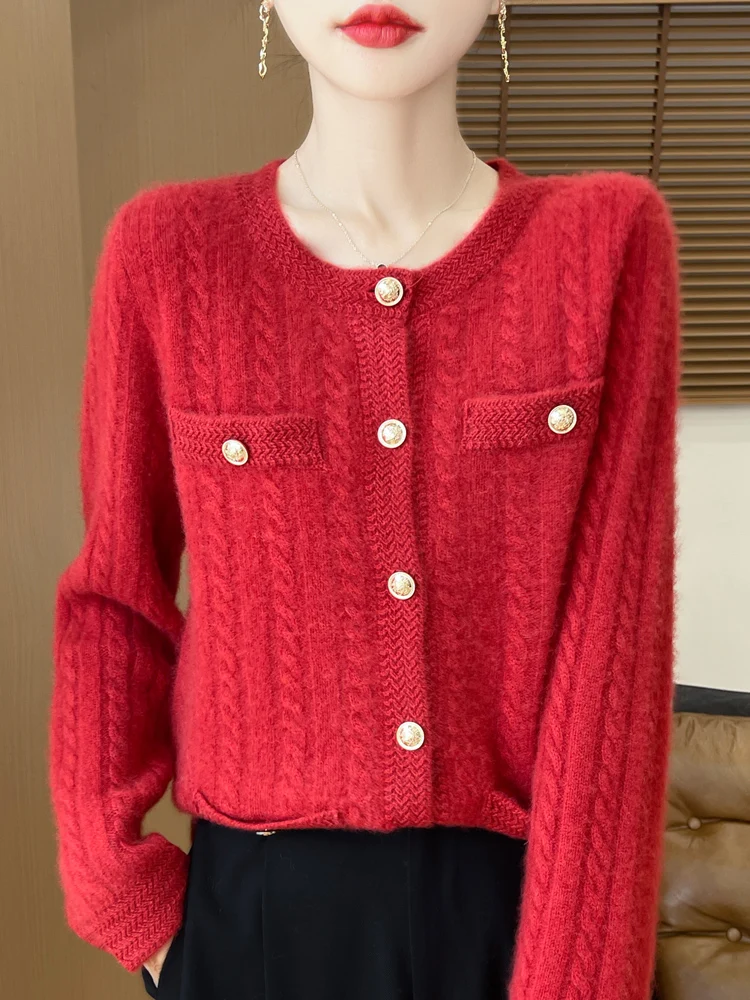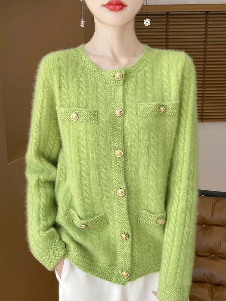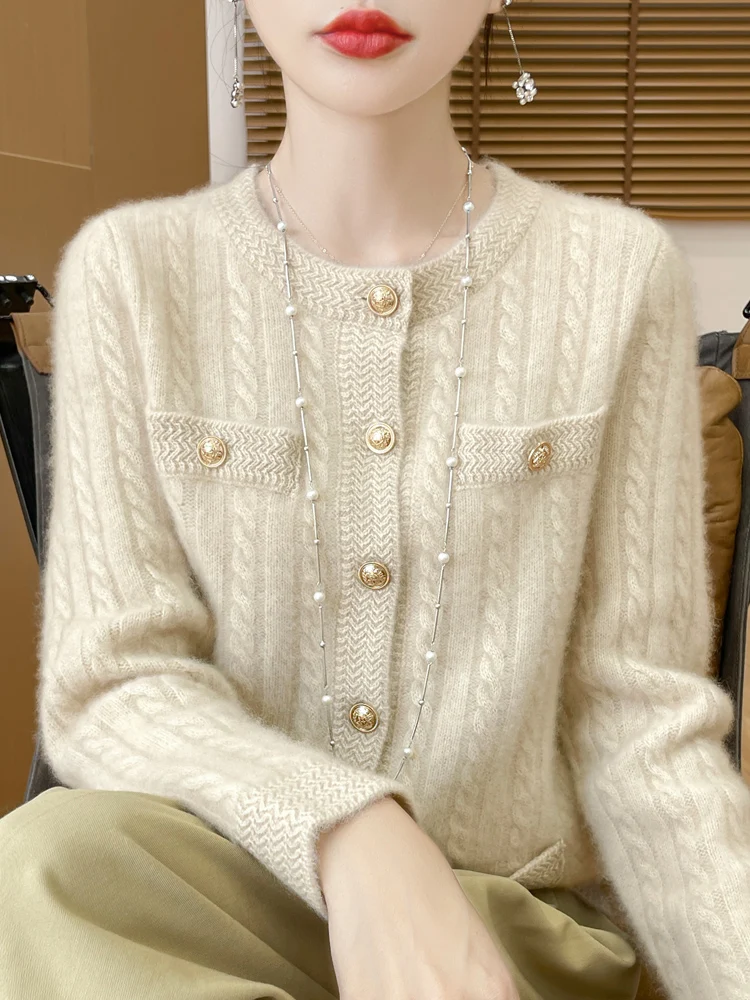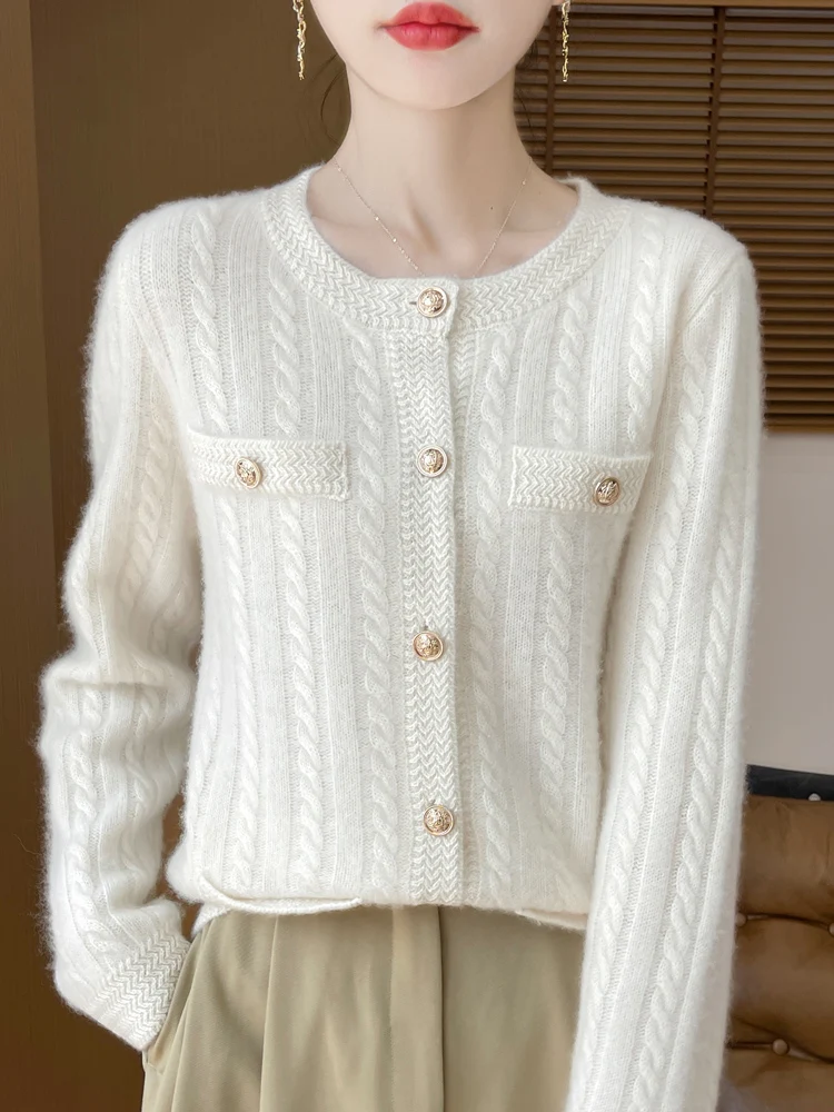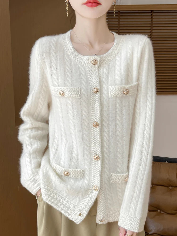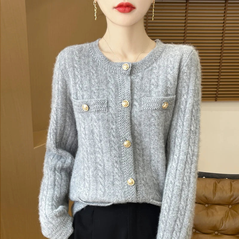 100% Merino Wool Buttoned Chanel Style Cable Knit Cardigan