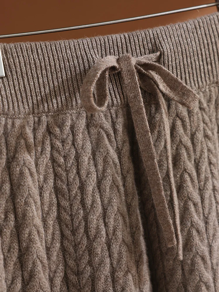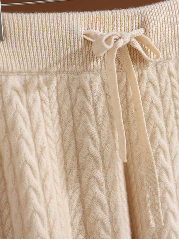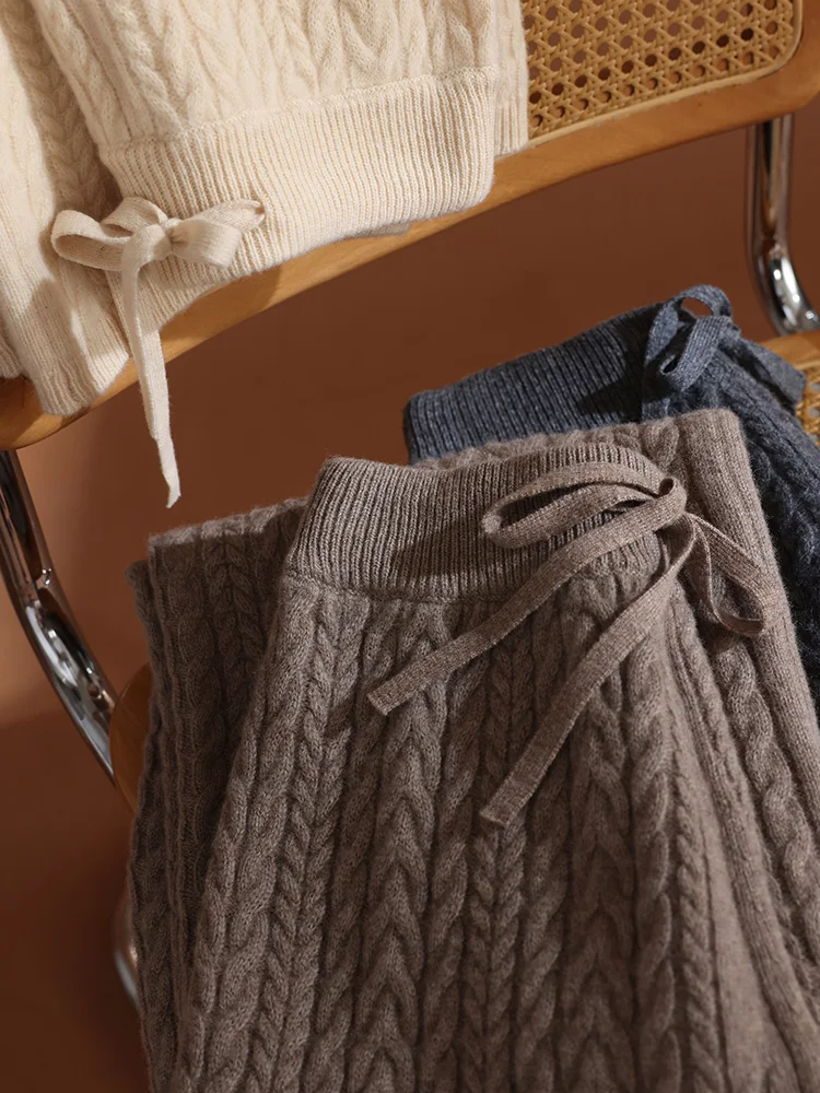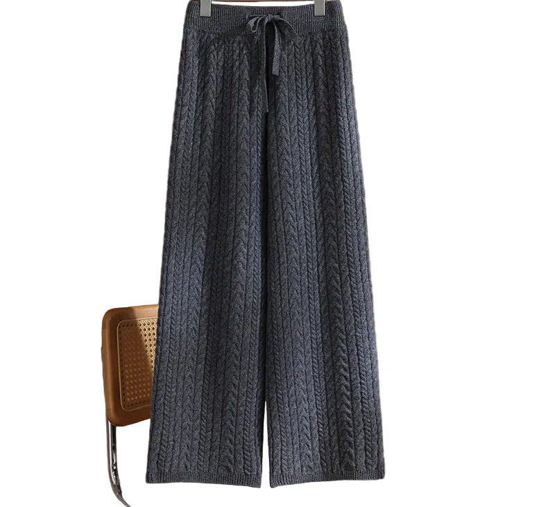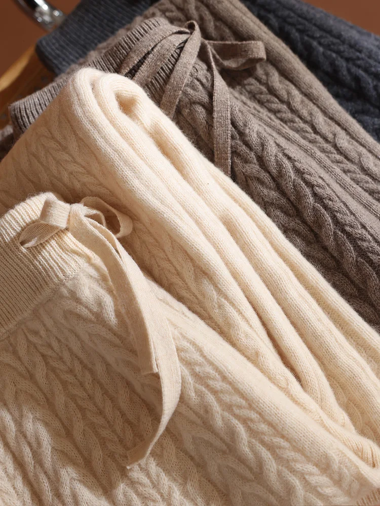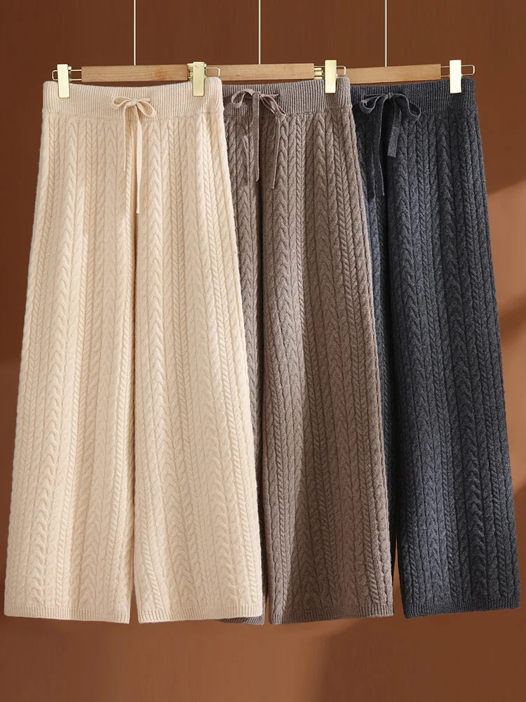 100% Merino Wool Thick + Fluffy Cable Knit Warm Winter Palazzo Pants