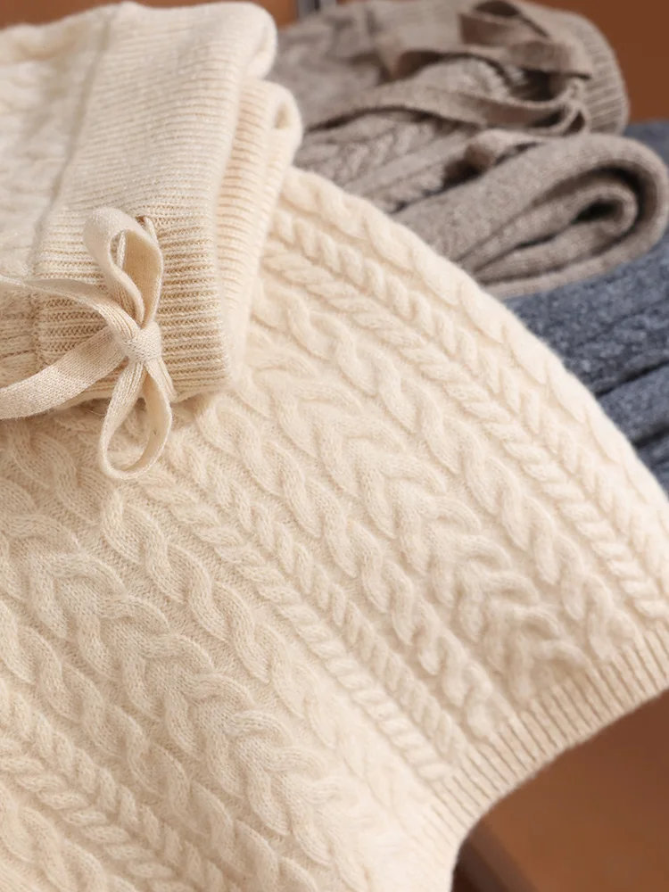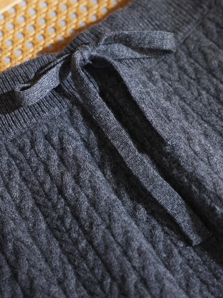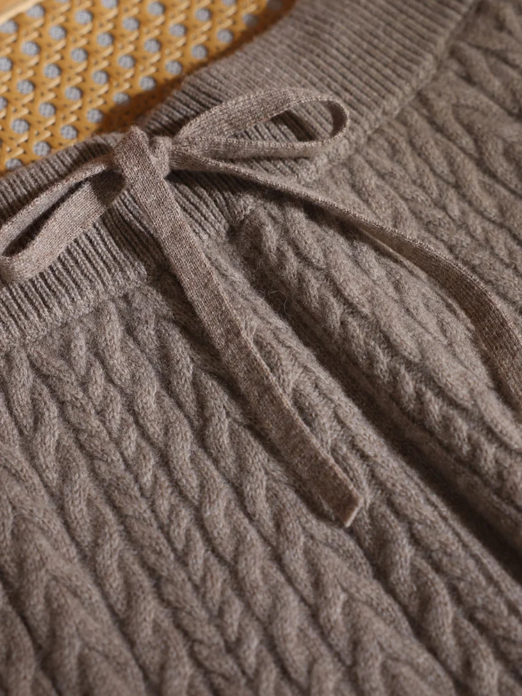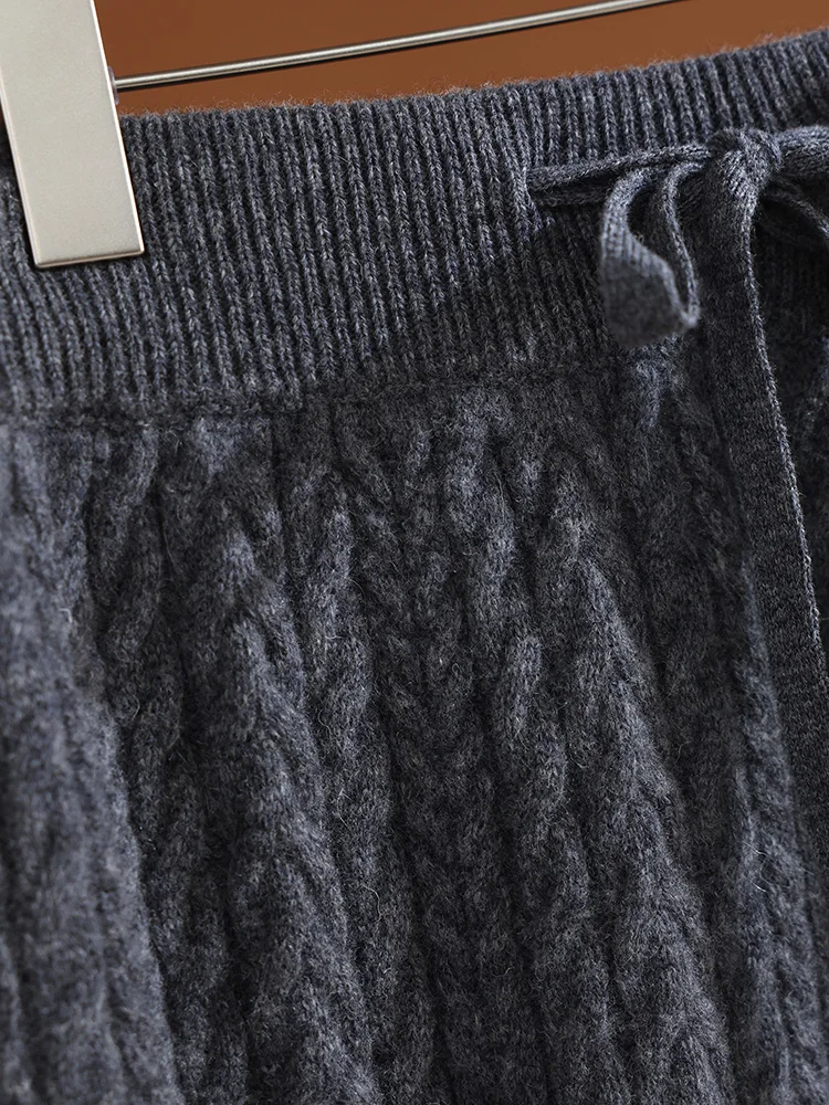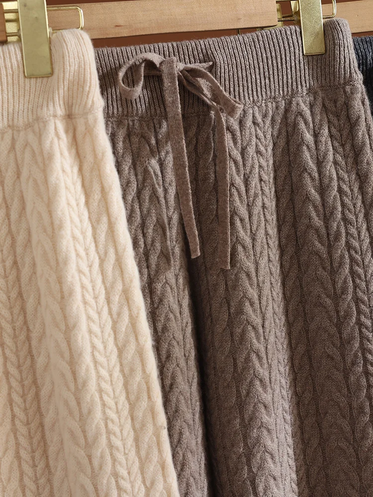 100% Merino Wool Thick + Fluffy Cable Knit Warm Winter Palazzo Pants