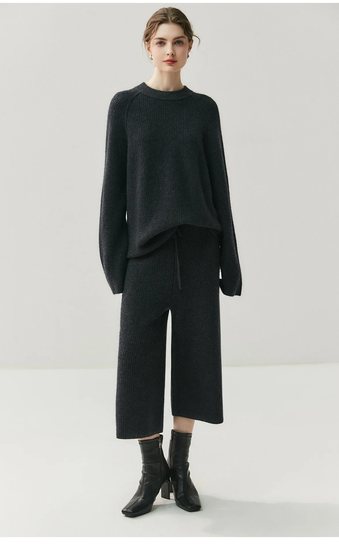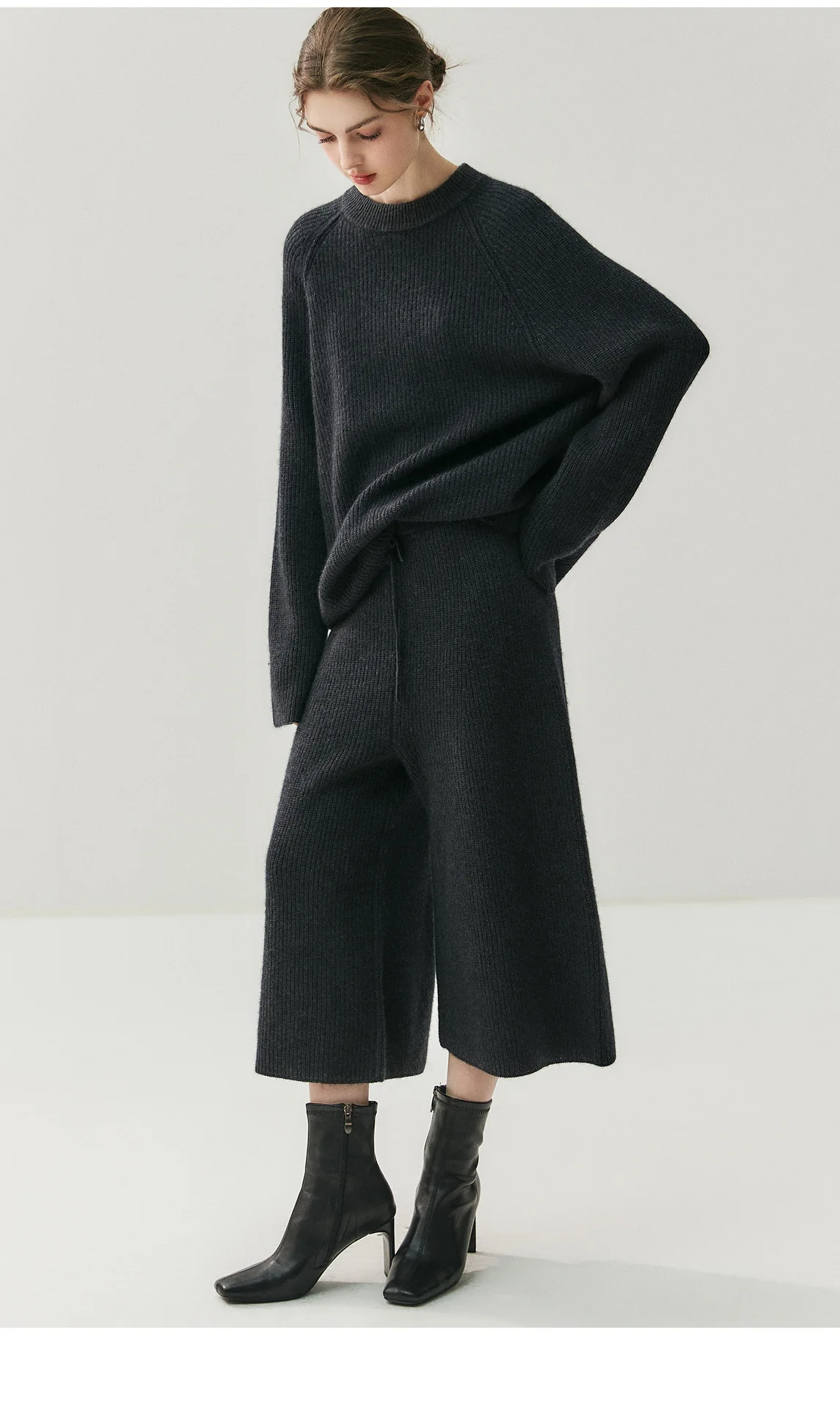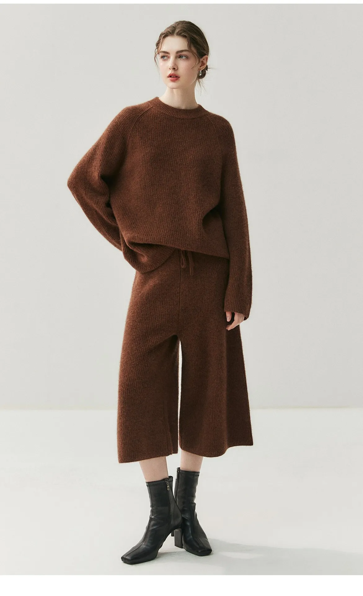 Cashmere is a 100% natural product extracted from Alashan League goats. The function of cashmere makes it one of the most popular materials in cold and humid environments. Even a thin layer of cashmere is more effective in keeping warm than any fiber. Crafted from high-quality cashmere, this set offers a luxurious feel and superior warmth for the cooler seasons.