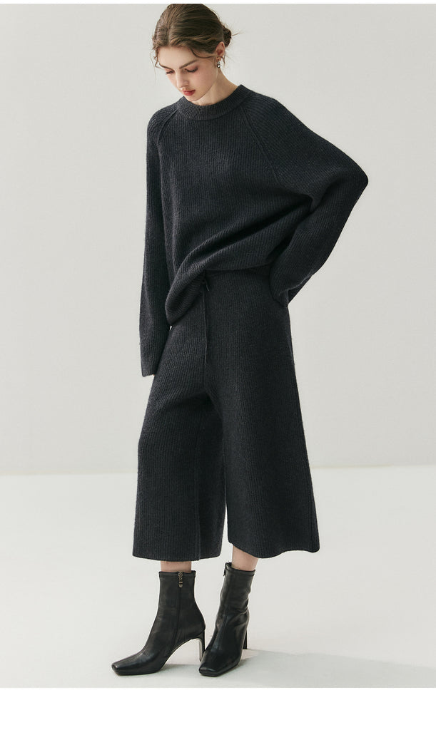 3 Piece 100% Cashmere British Minimalist Sweater+Palazzo Pants+Hat Set