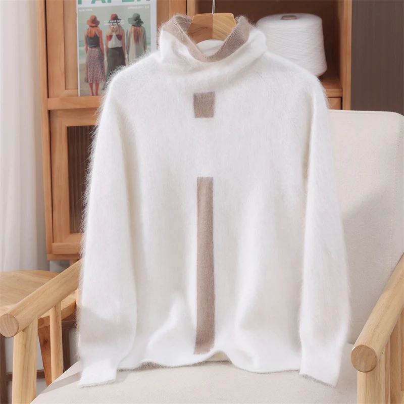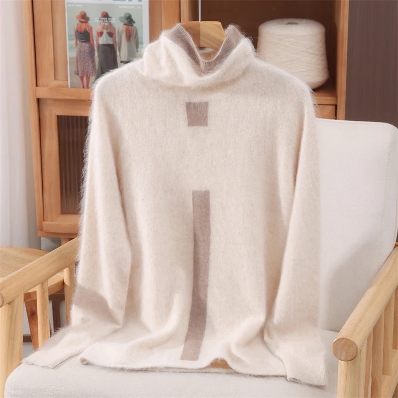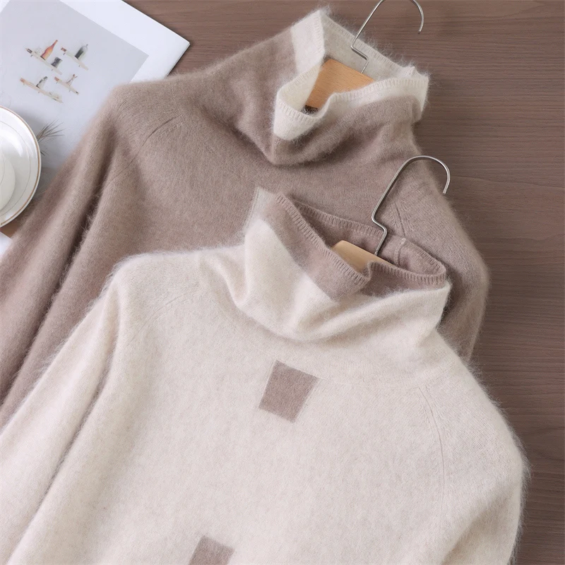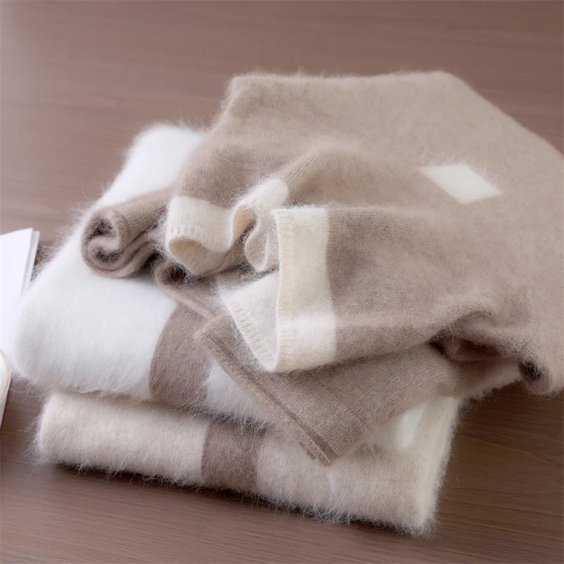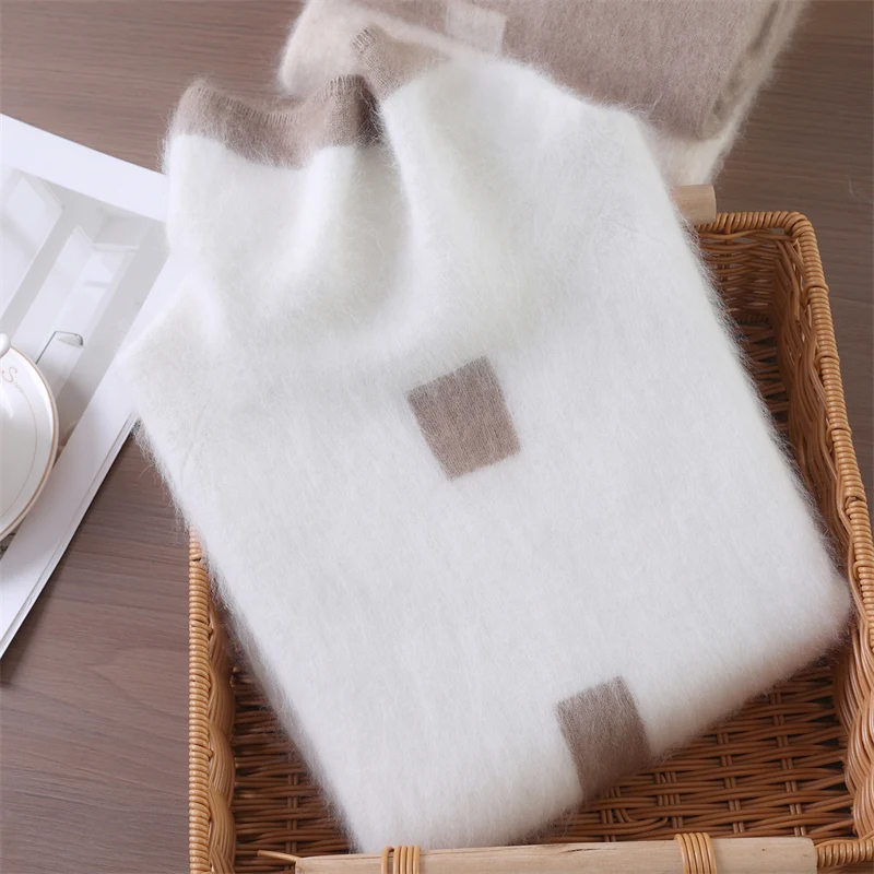 Dainty Ultra Soft 100% Mink Cashmere Color Block Pullover Sweater