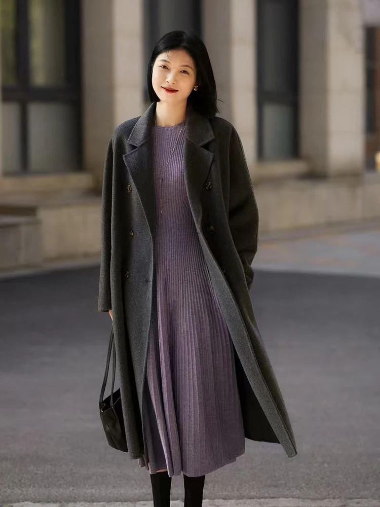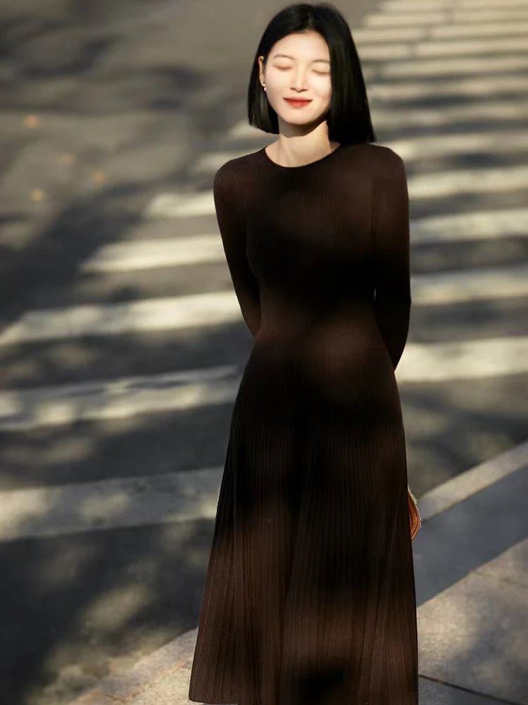Elegant 100% Merino Wool A-Line Pleated Flared 3 Season MAXI Dress
