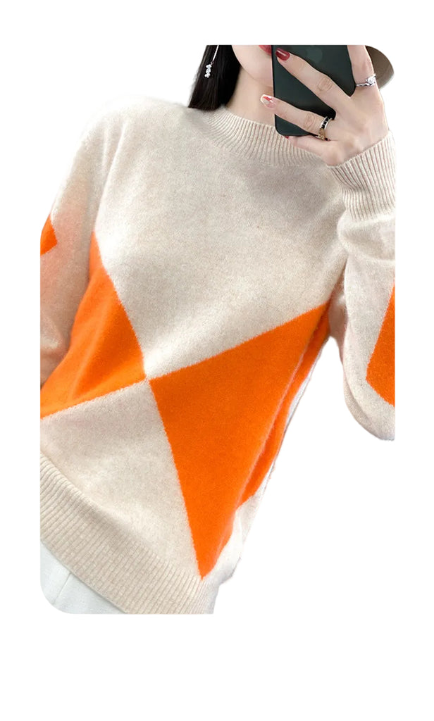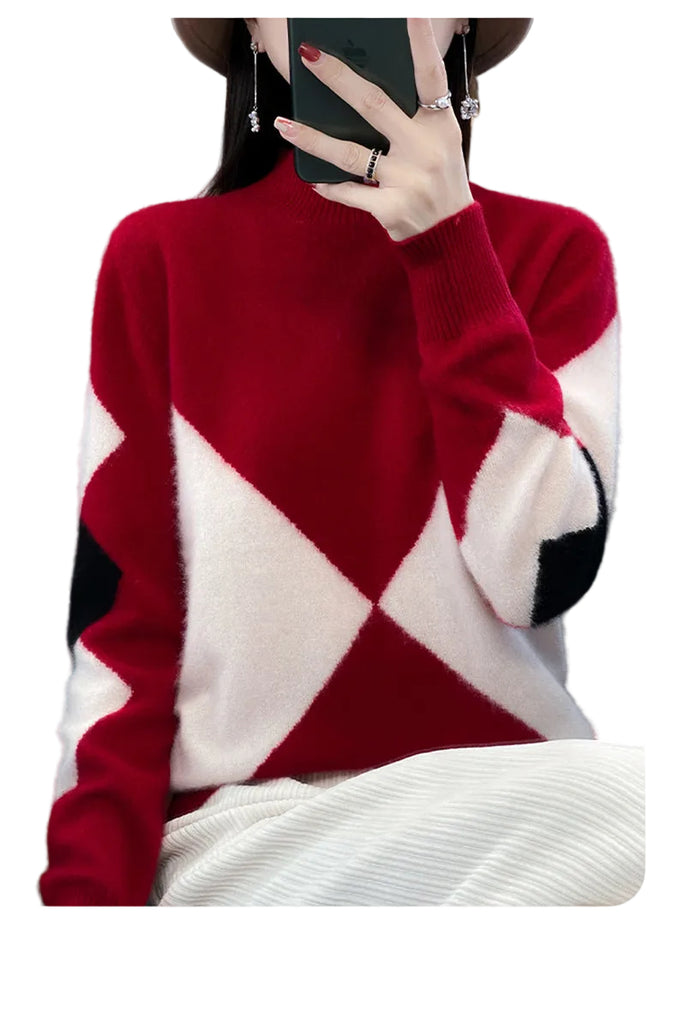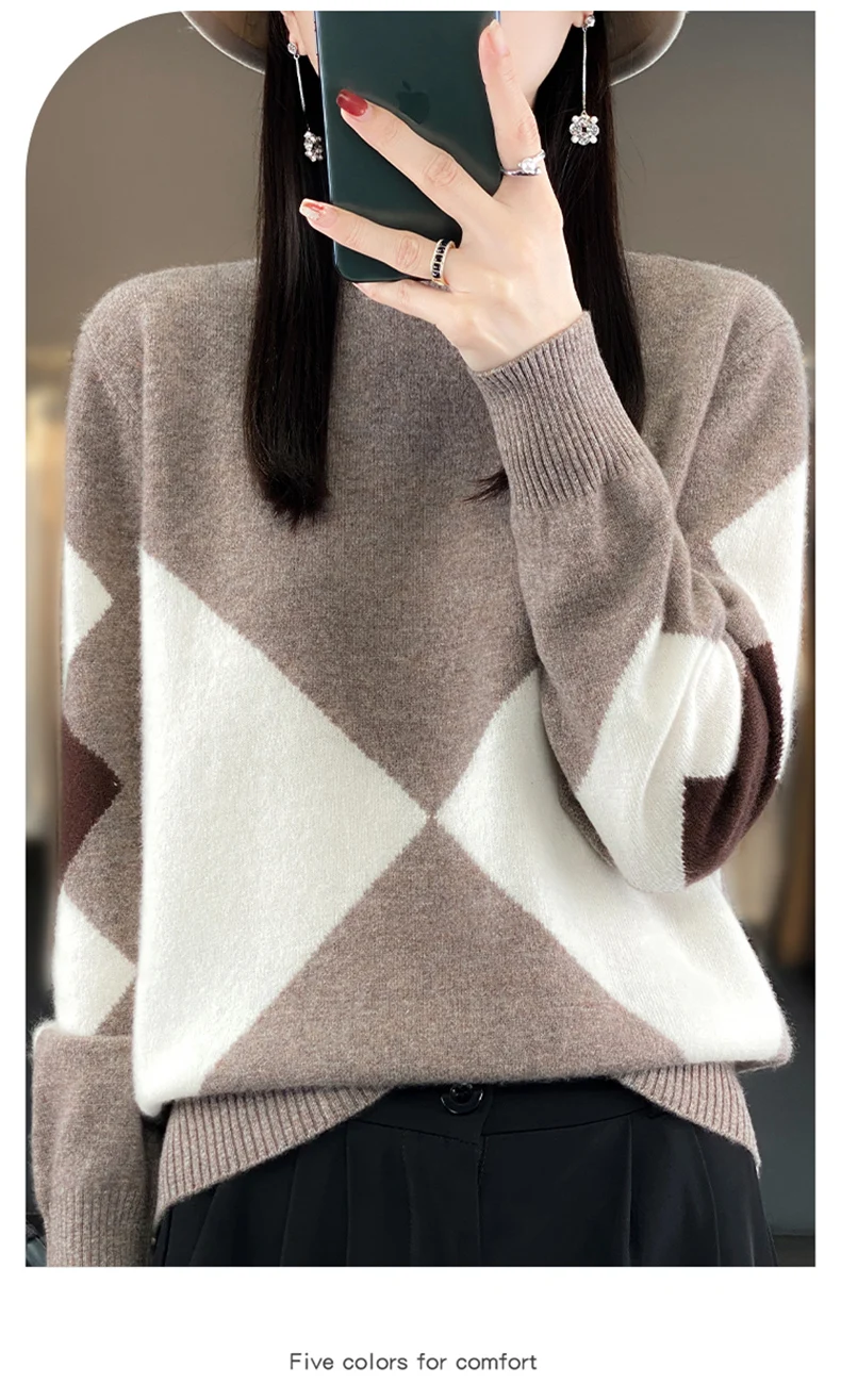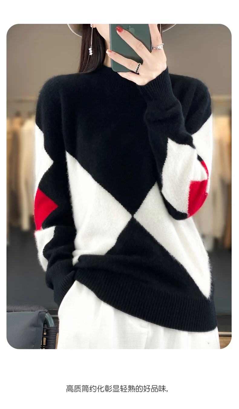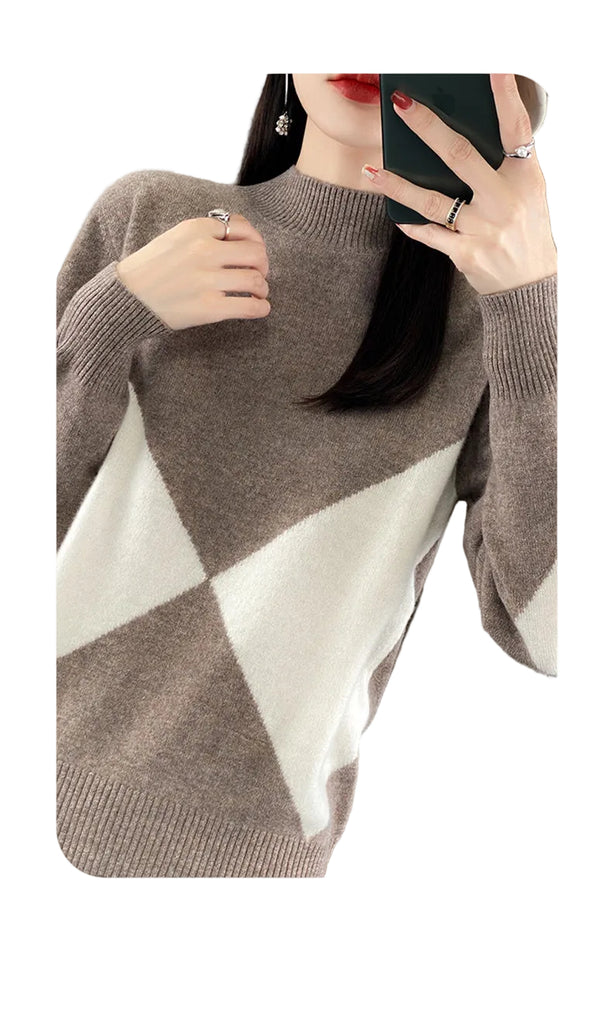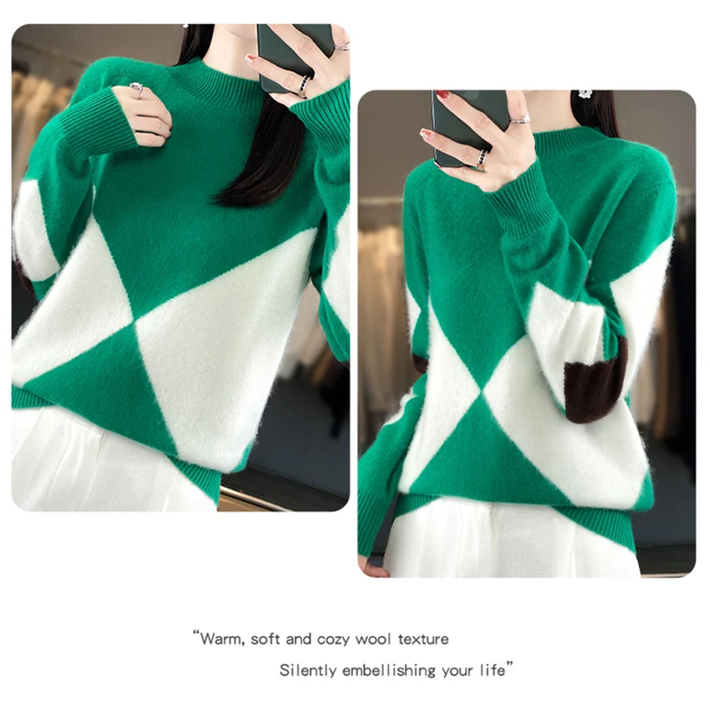 Elegant Super Warm 100% Pure Wool Patchwork Pullover Sweater