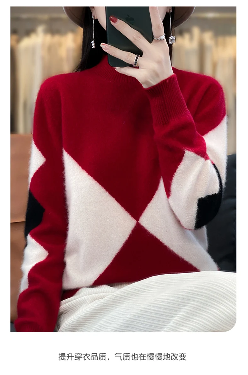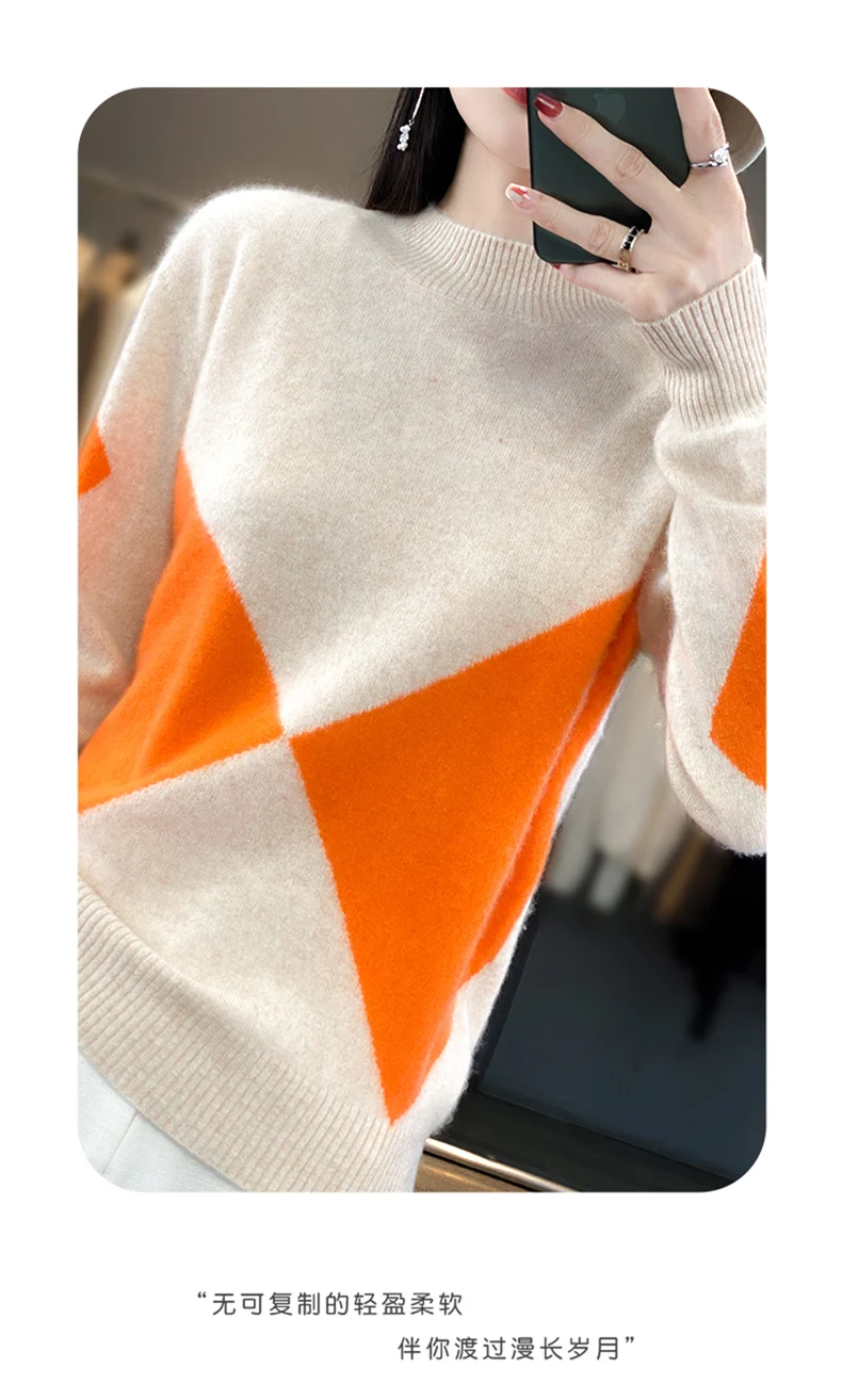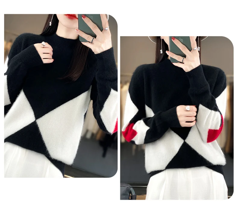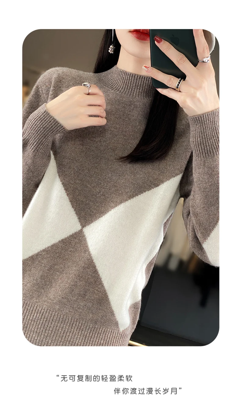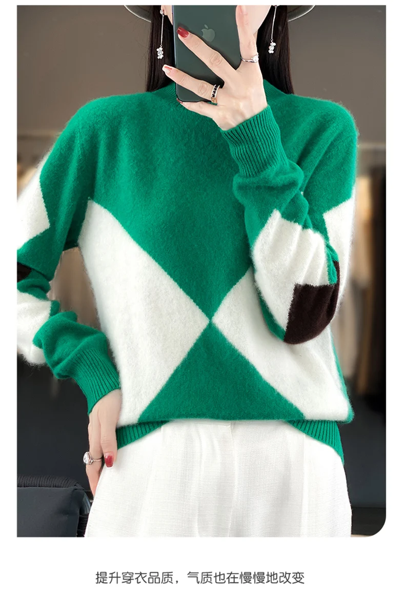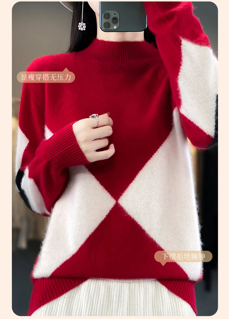 Elegant Super Warm 100% Pure Wool Patchwork Pullover Sweater