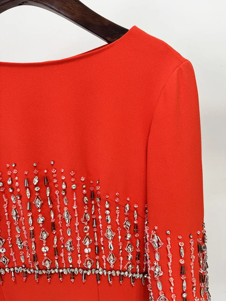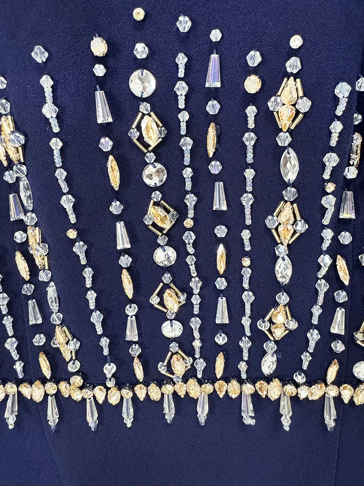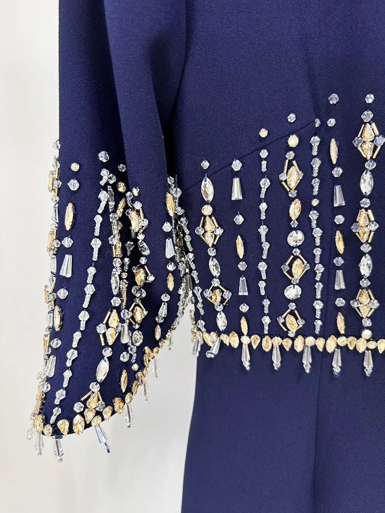 Exquisite Cotton Blend High Fashion Half Sleeve Beaded Party MAXI Gown