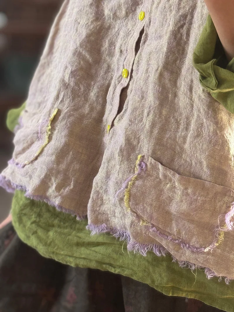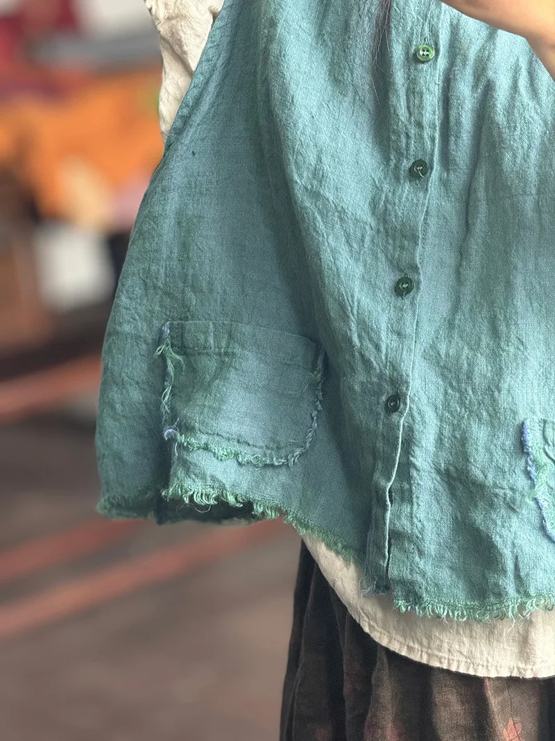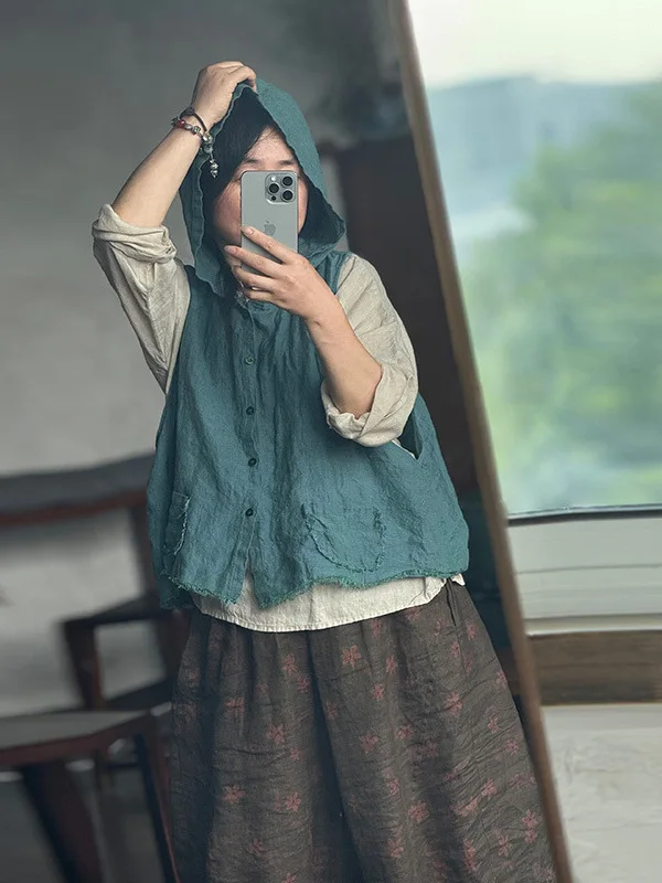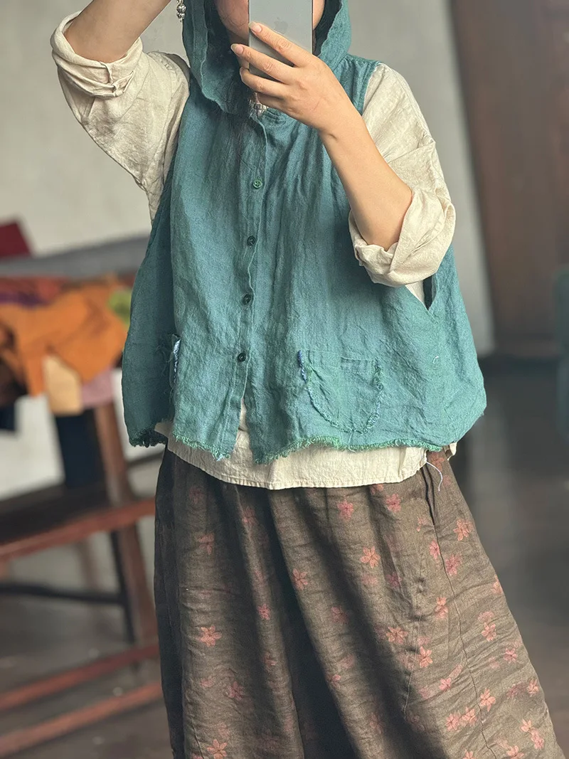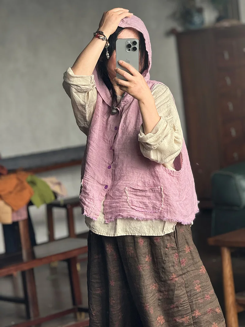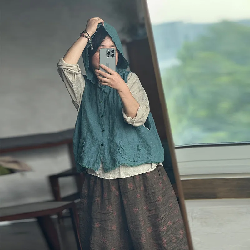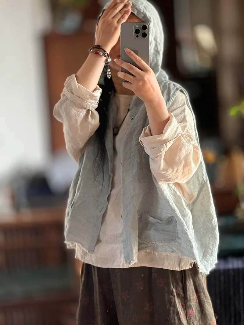 Unique Edgy 100% Linen Lightweight Summer Hoodie Vest